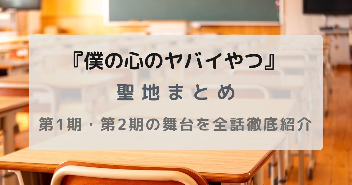 アニメ『僕の心のヤバイやつ』に登場する舞台を、第1期・第2期あわせて全話分まとめました。 何気ない日常の風景が、特別な思い出に変わる――そんな本作の魅力を、実際の場所とともに振り返ります。 あの名シーンの舞台はどこなのか?聖地巡礼の参考に、ぜ... -