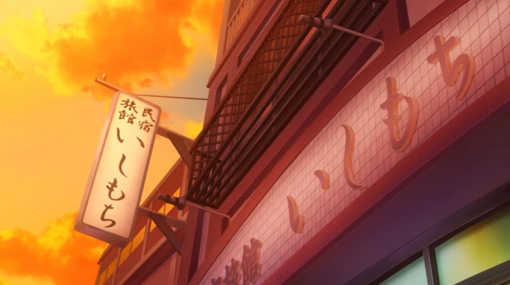PV第2弾の18秒付近で、「民宿旅館いしもち」と書かれた建物のカットがあります。