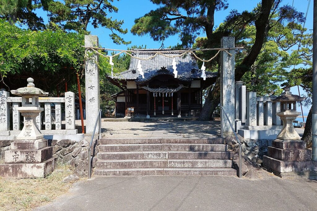 伊予市の海沿いにある神社で、五色姫伝説にまつわる場所として知られています。