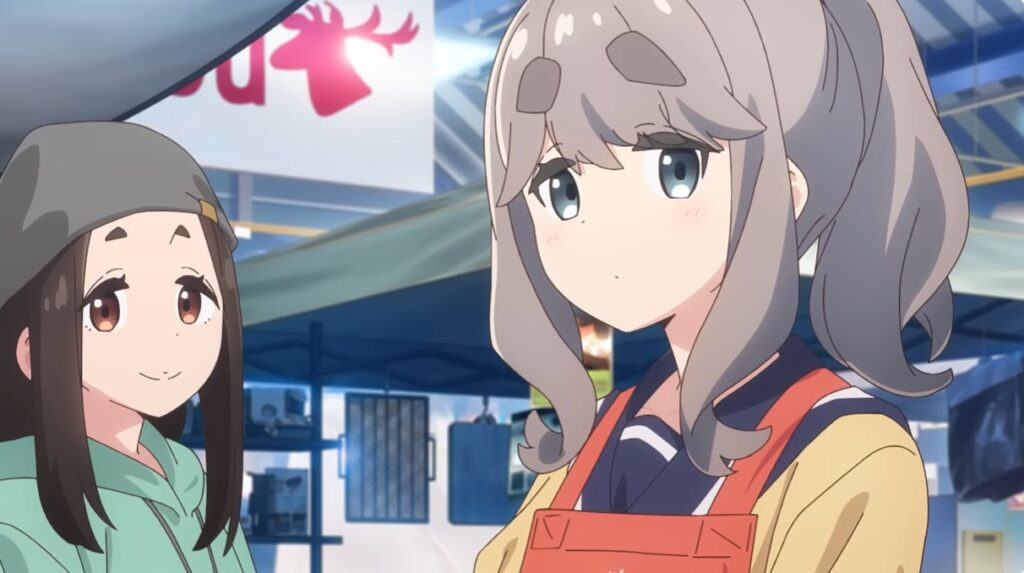 特報PVの24秒あたりでは、エプロン姿の絵真と、カリブー身延店の店員・揖斐川さんのカットが映ります。